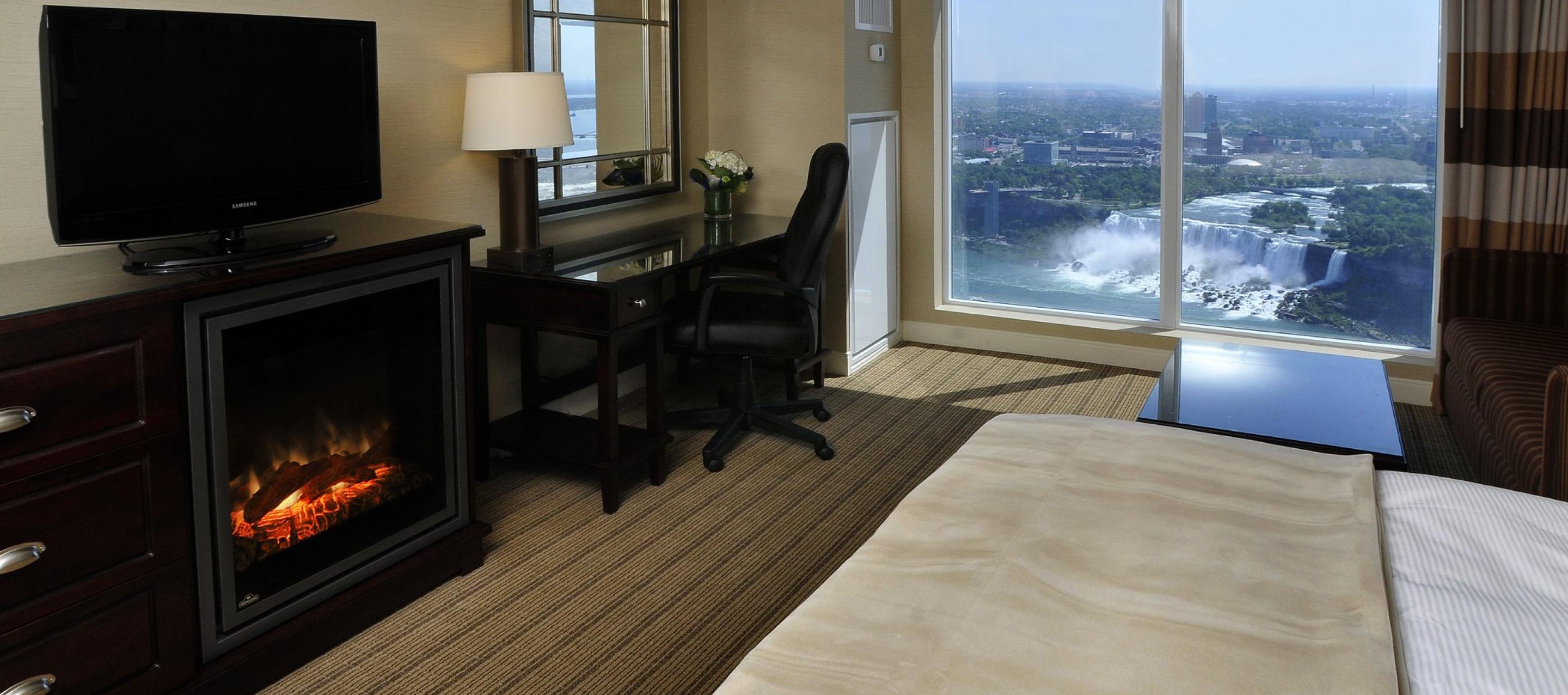 Hilton Niagara Falls is designed with our guests’ comfort and convenience in mind, offering a variety of modern room options, including Jacuzzi tubs, high-definition TVs, and fireplaces. Whether it's a weekend getaway or an extended vacation, you can’t go wrong when making the Hilton Niagara Falls/Fallsview Hotel and Suites your destination of choice when visiting Niagara Falls.